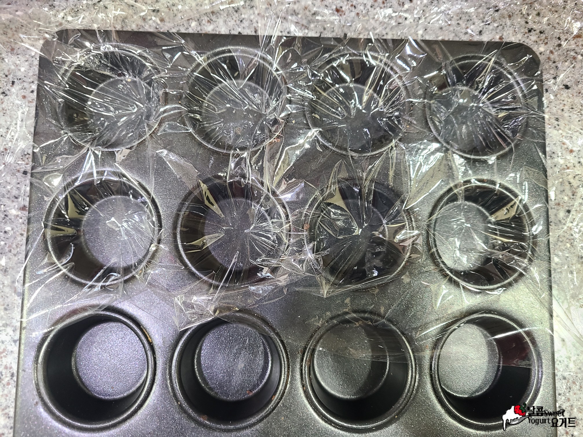 원하시는 틀을 준비해 비닐랩을 깔아줍니다.