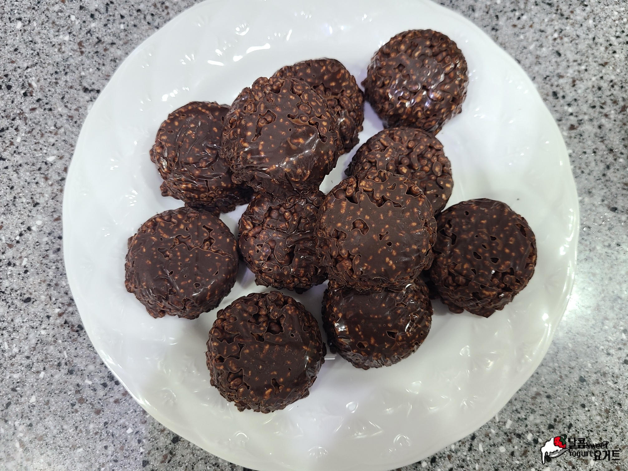 이렇게 하여 초초간단하게 완성이 된 노오븐 디저트! 크런치 초콜릿입니다.