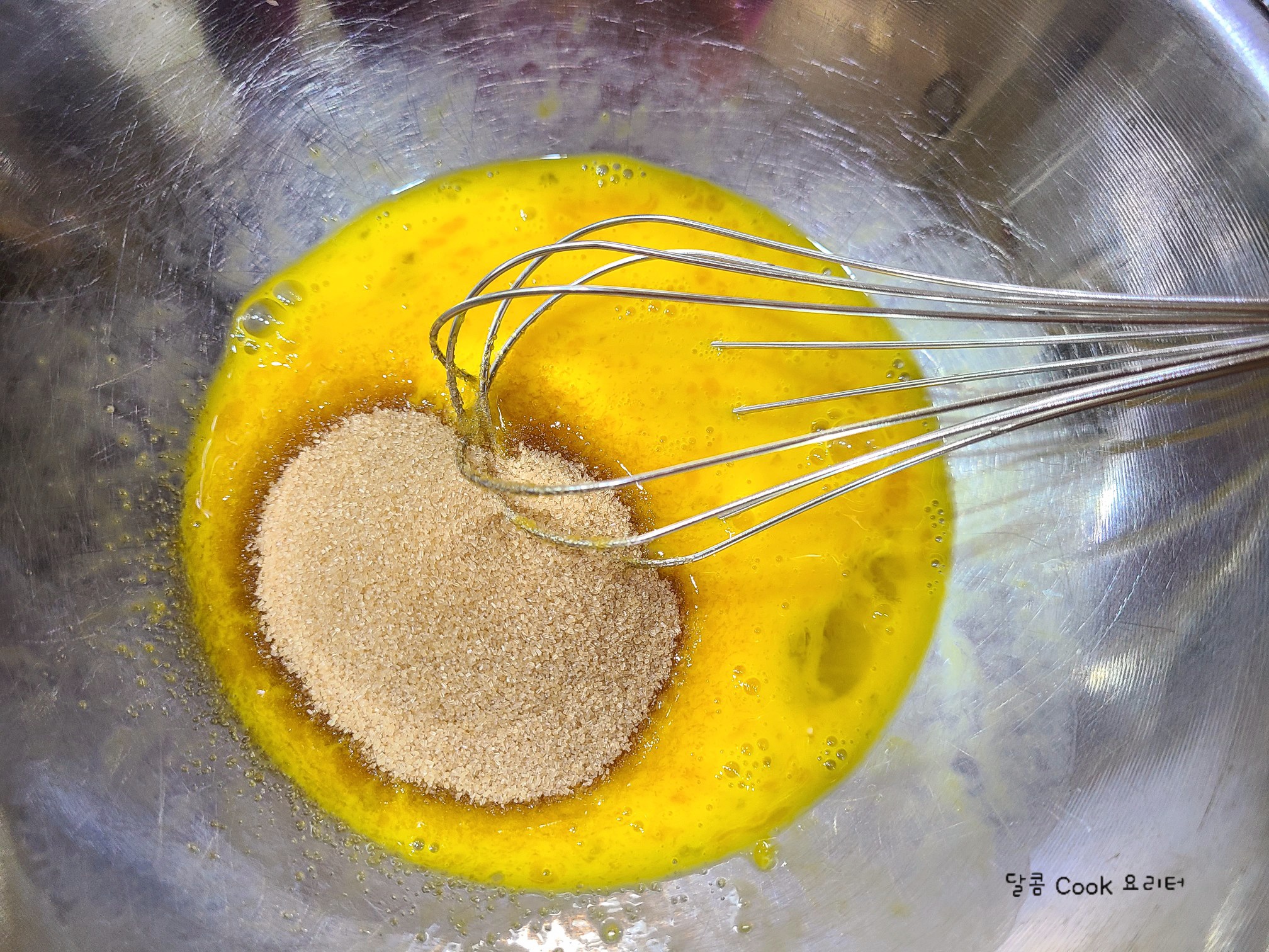 계란 2개를 가볍게 풀어주고 설탕 60g,