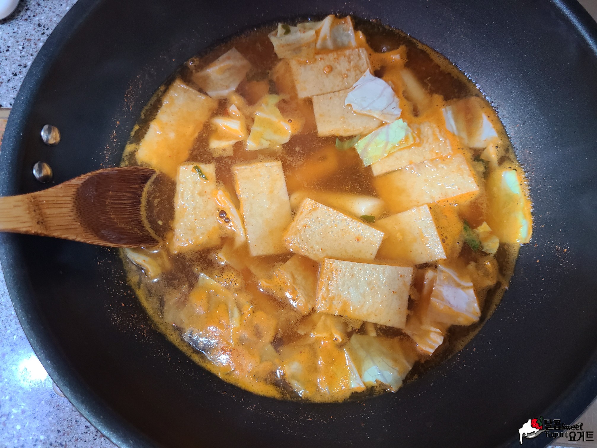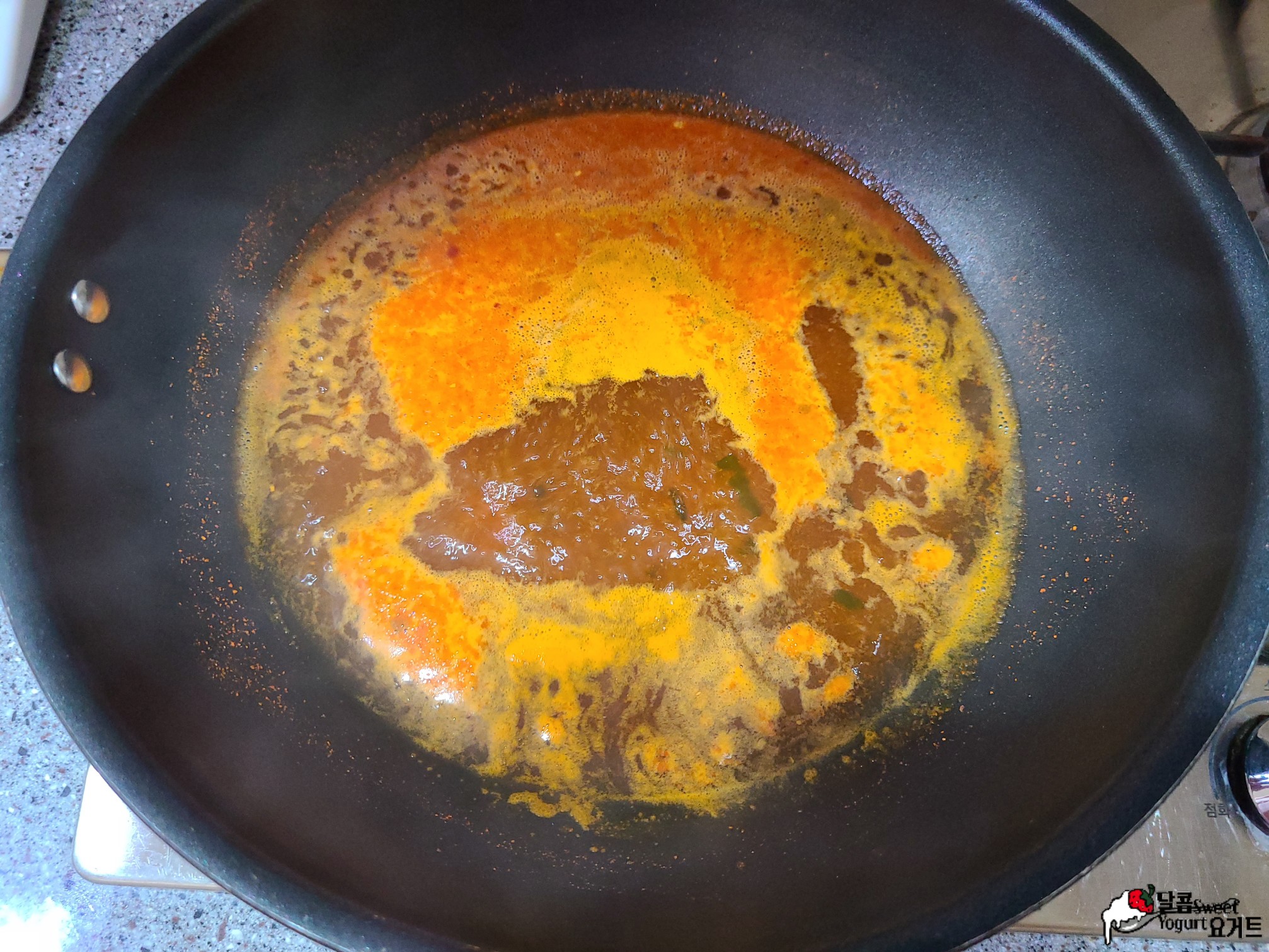 여기에 라면스프 0.5스푼을 넣고 잘 풀어주고 끓여줍니다.