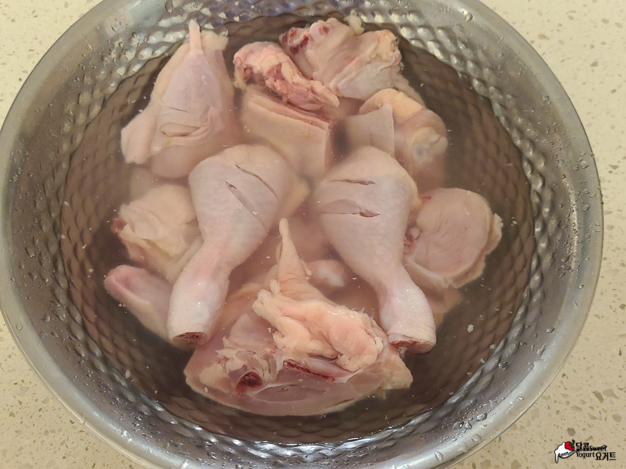 닭볶음탕용 닭 500g은 깨끗하게 세척해 주고 양념이 잘 배도록 칼집을 내줍니다.