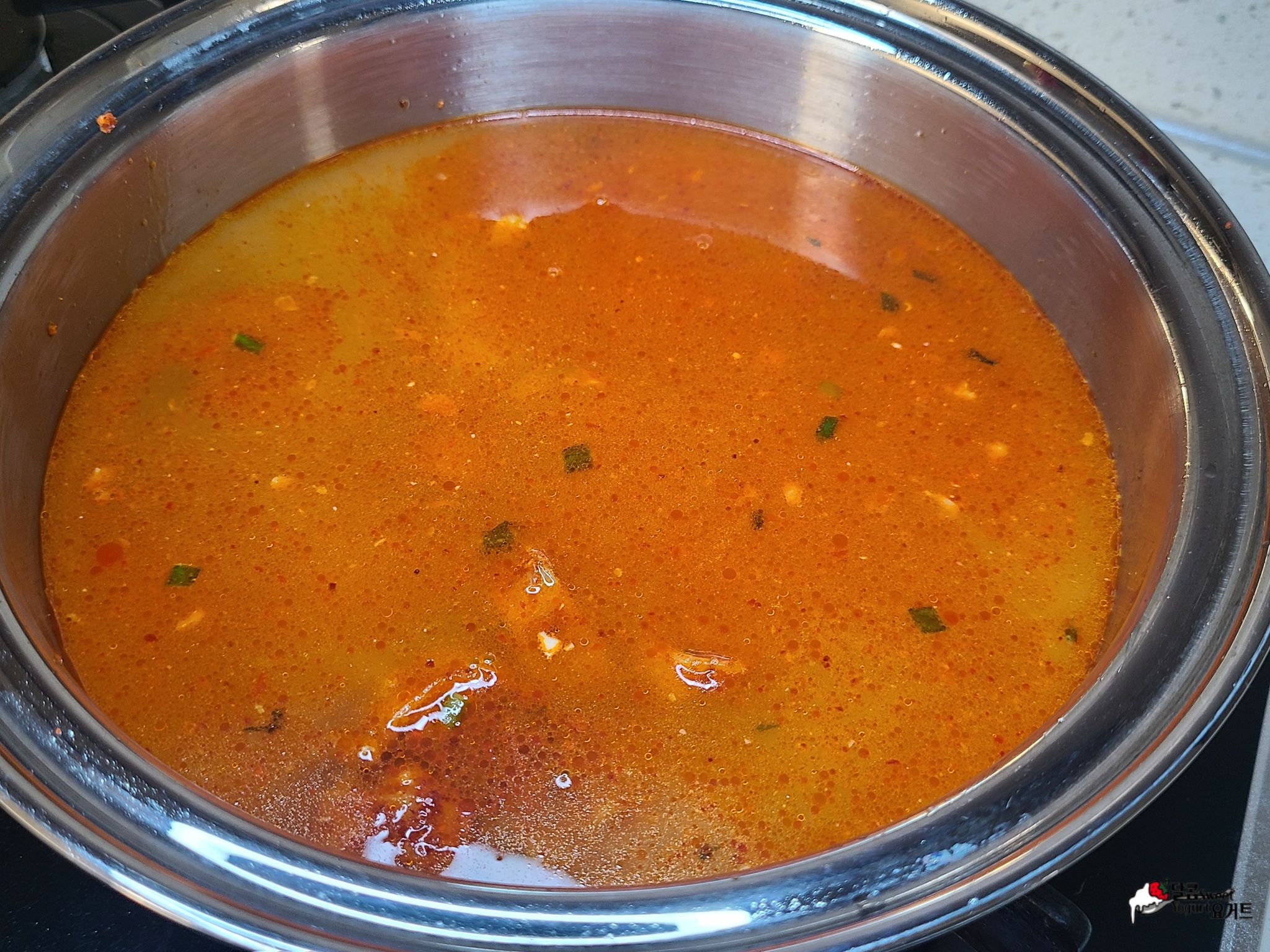 멸치육수나 사골육수가 아닌 만두를 고춧가루와 함께 볶아 보았더니 만두의 육즙과 고추기름까지 더해져 깊은 국물맛이 예술이었던.