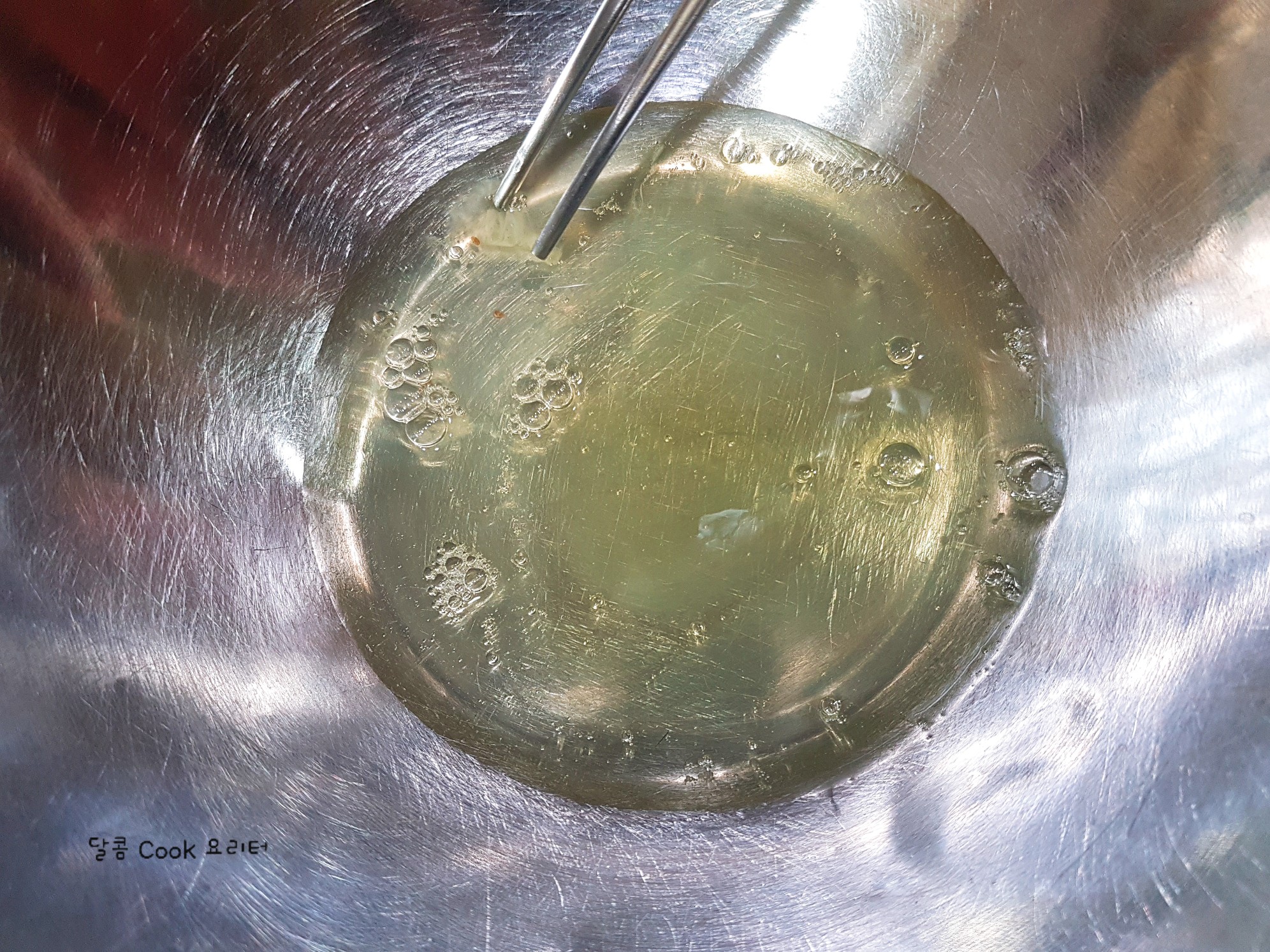 그릇을 뒤집어도 흘러내리지 않으면 완성이 된 거랍니다.