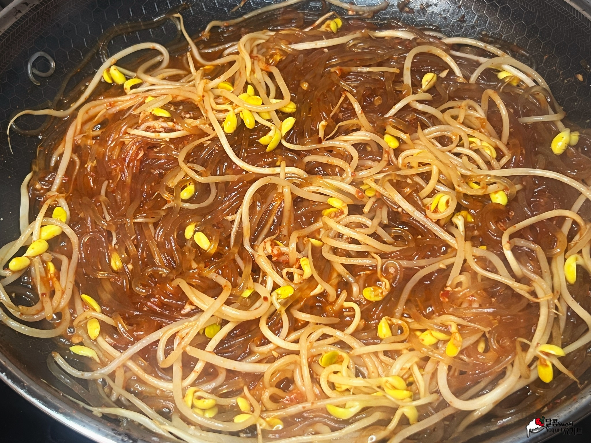 특별한 반찬이 없는 날 콩나물과 당면만 있다면 초간단하게 만들기 좋은 매운 콩나물잡채!!