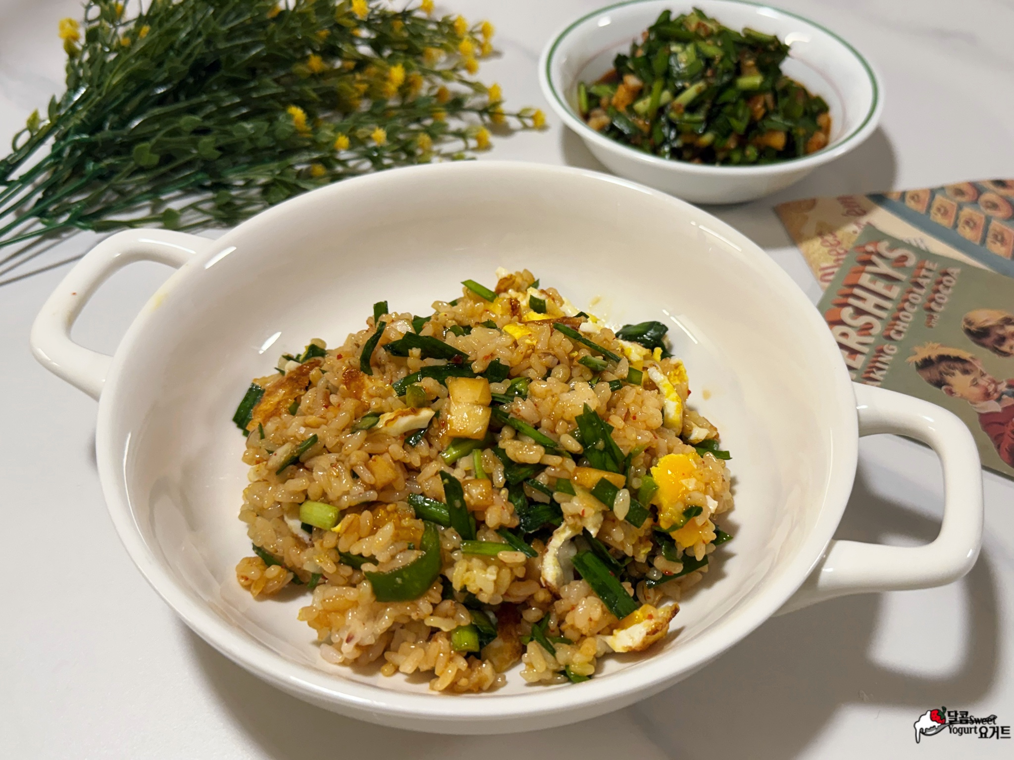 완성된 부추장은 별다른 재료 없이 밥과 함께 비벼 먹어도 맛있는데 여기에 계란후라이까지 더해주면 굿!!