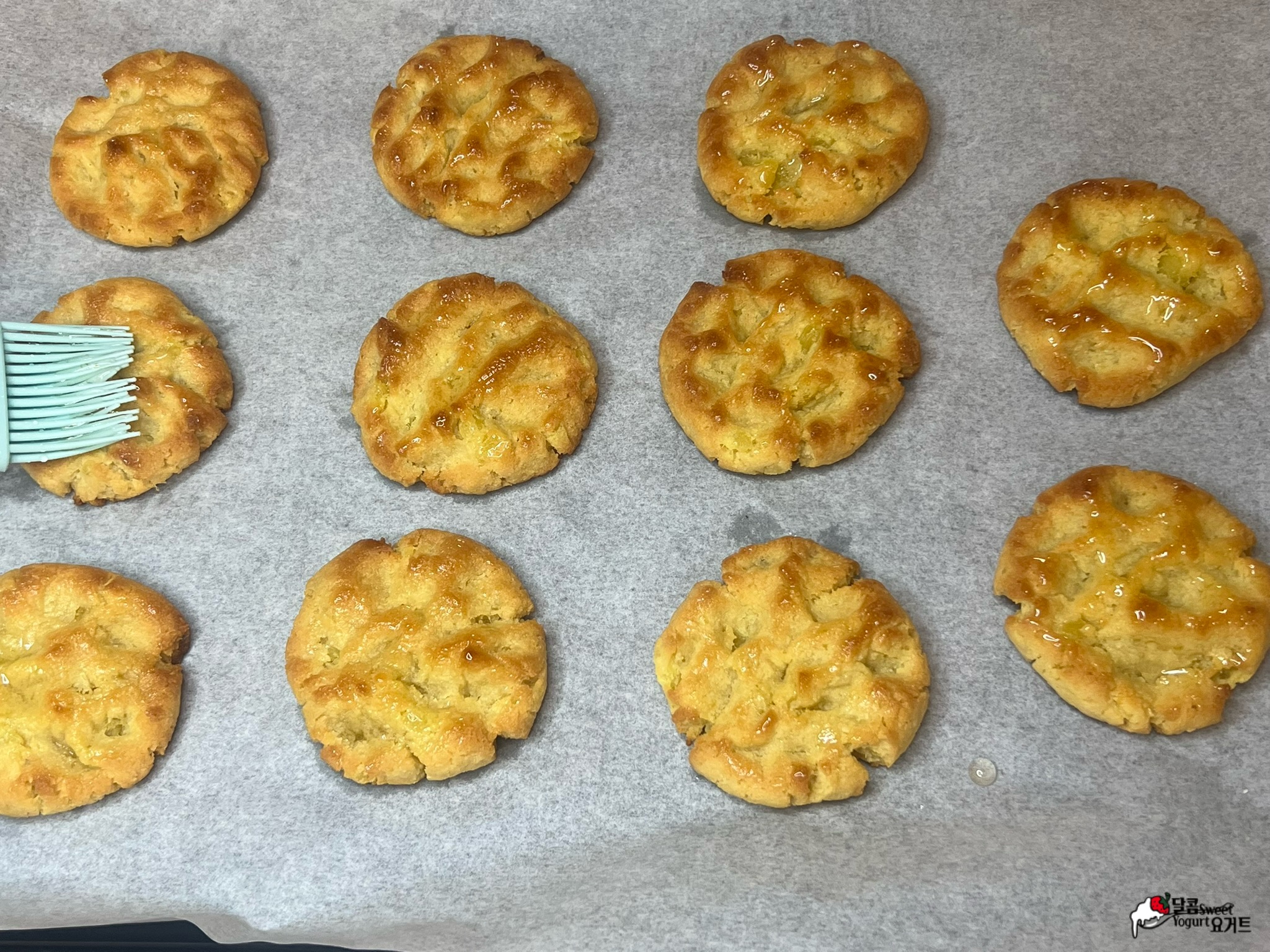 쿠키 윗면에 꿀을 살짝 발라줍니다.