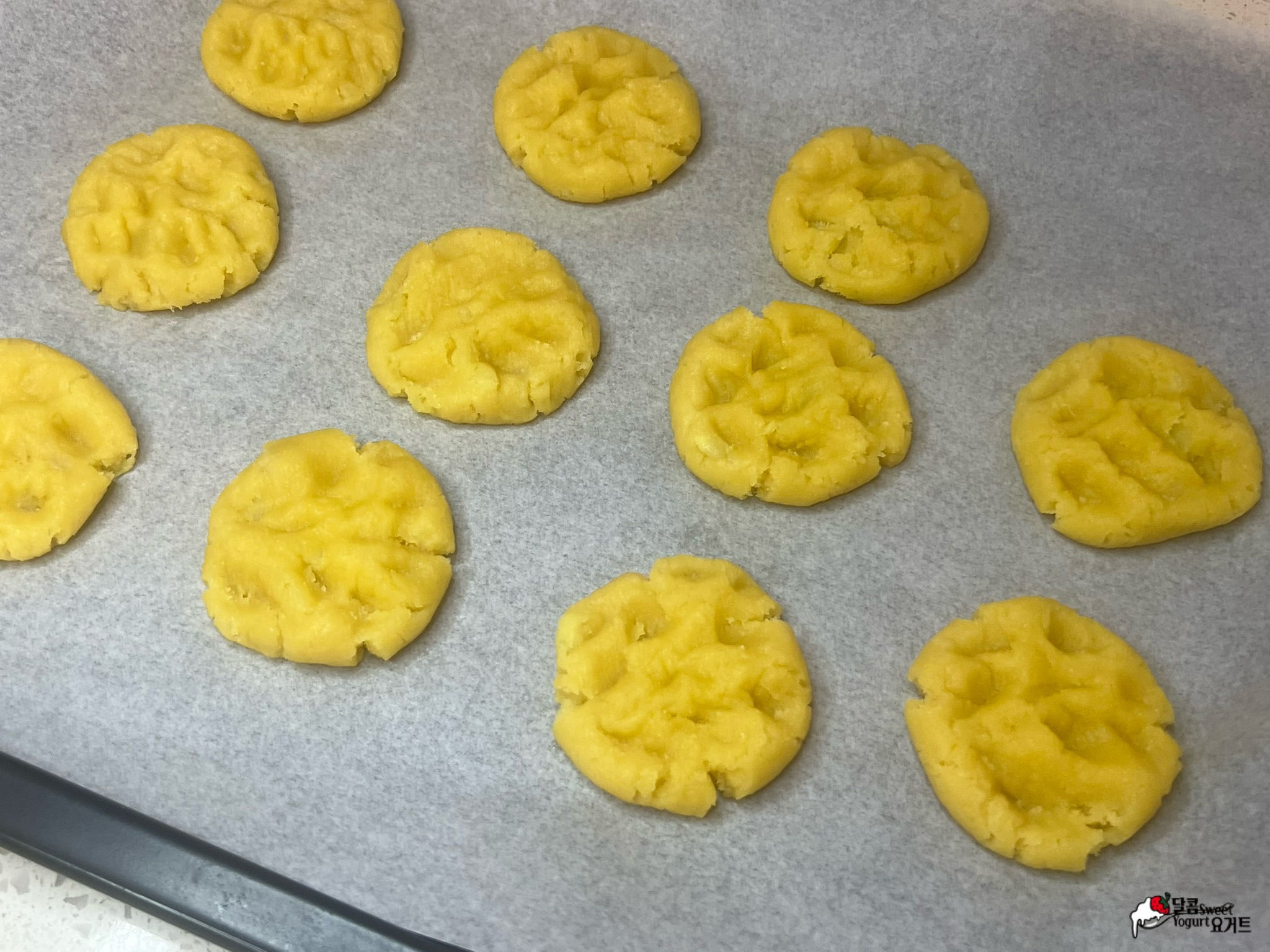 손가락으로 눌러가며 쿠키 모양을 만들어 줍니다.