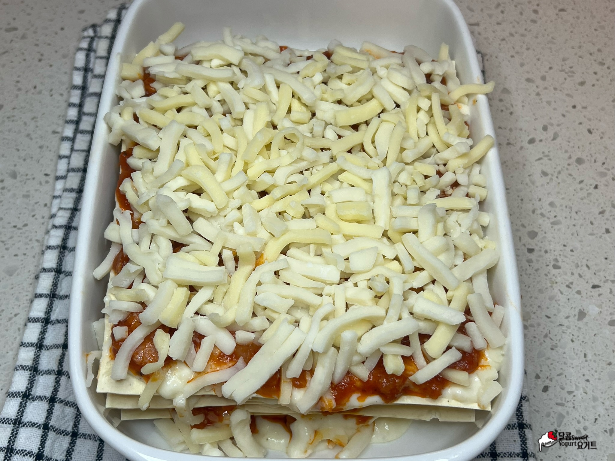 (만약 삶은 라자냐면을 사용하였다면 10분 정도만 구워주면 됨.)