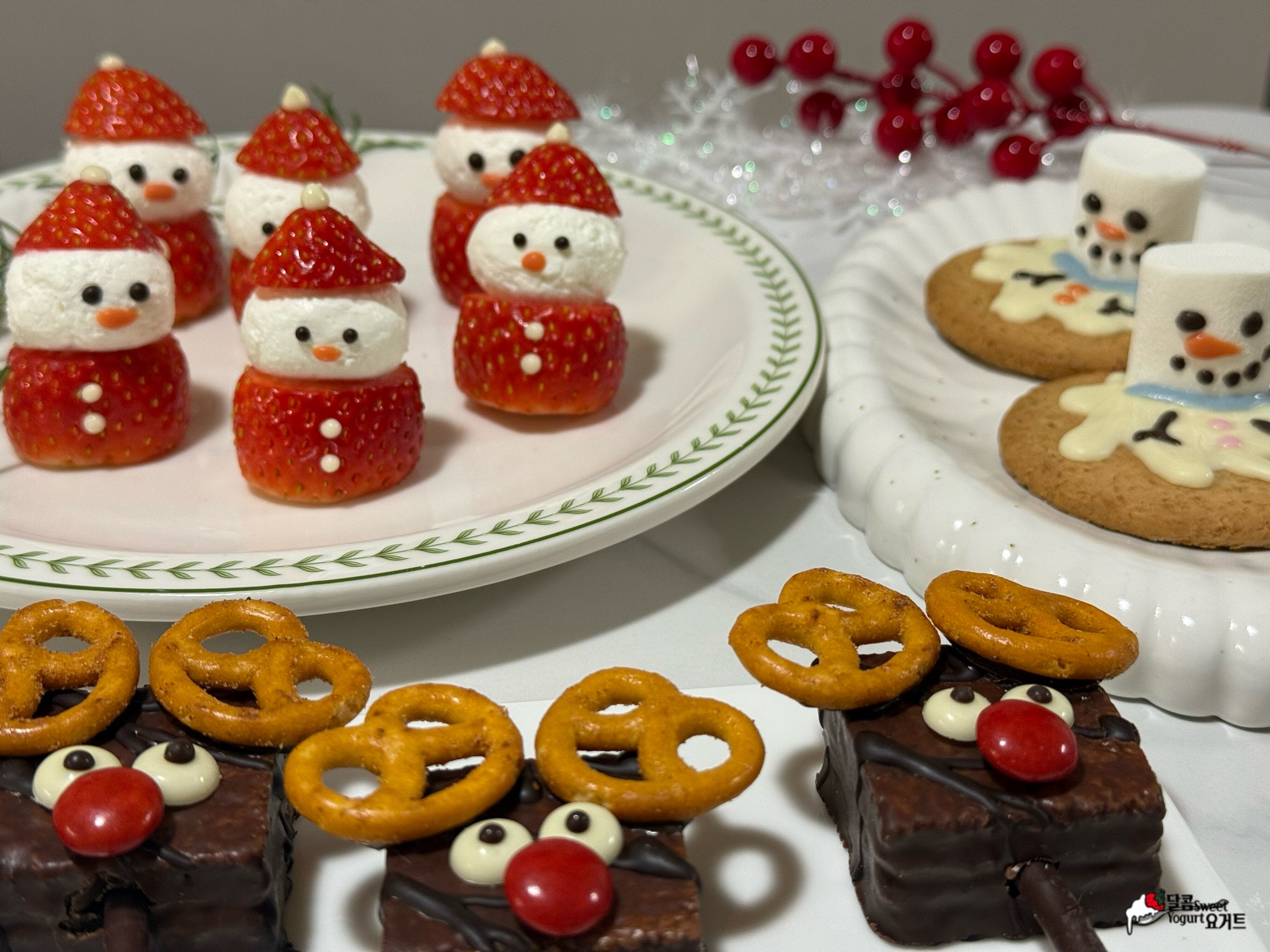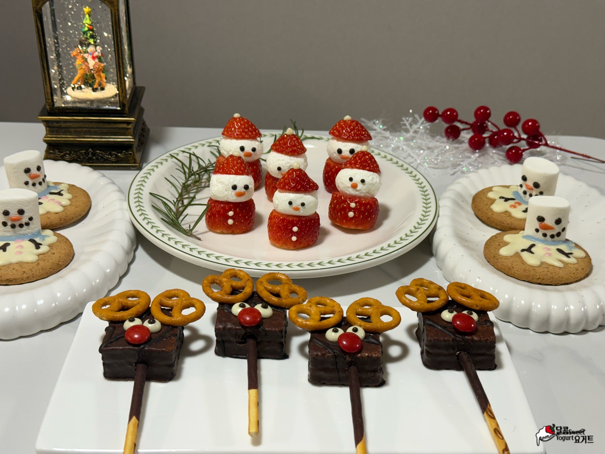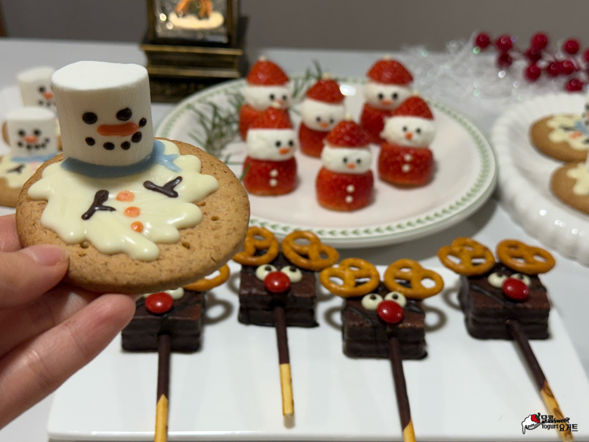 그럼 크리스마스를 맞이하여 간단하게 만들어 본 3종류 디저트! 모양도 귀여운 오예스 루돌프/ 딸기산타/ 눈사람쿠키를 만들어보도록 하겠습니다.
