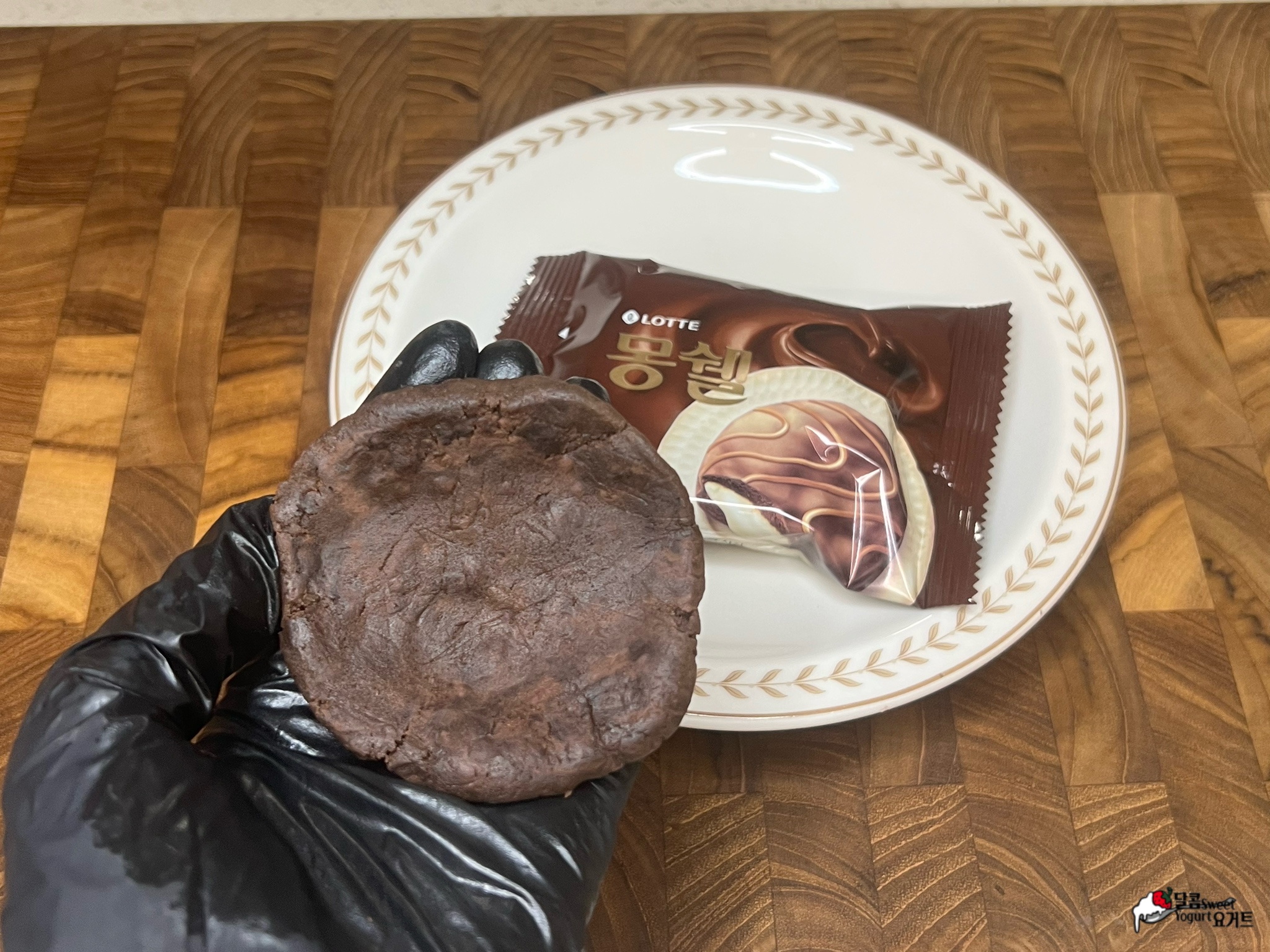 먼저 몽쉘을 준비해 으깨 준 후 뭉쳐가며 한 덩어리로 만들어 줍니다.