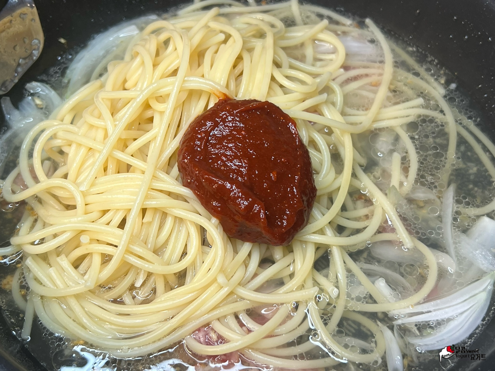 면수 1컵, 고추장 소스를 넣어줍니다.