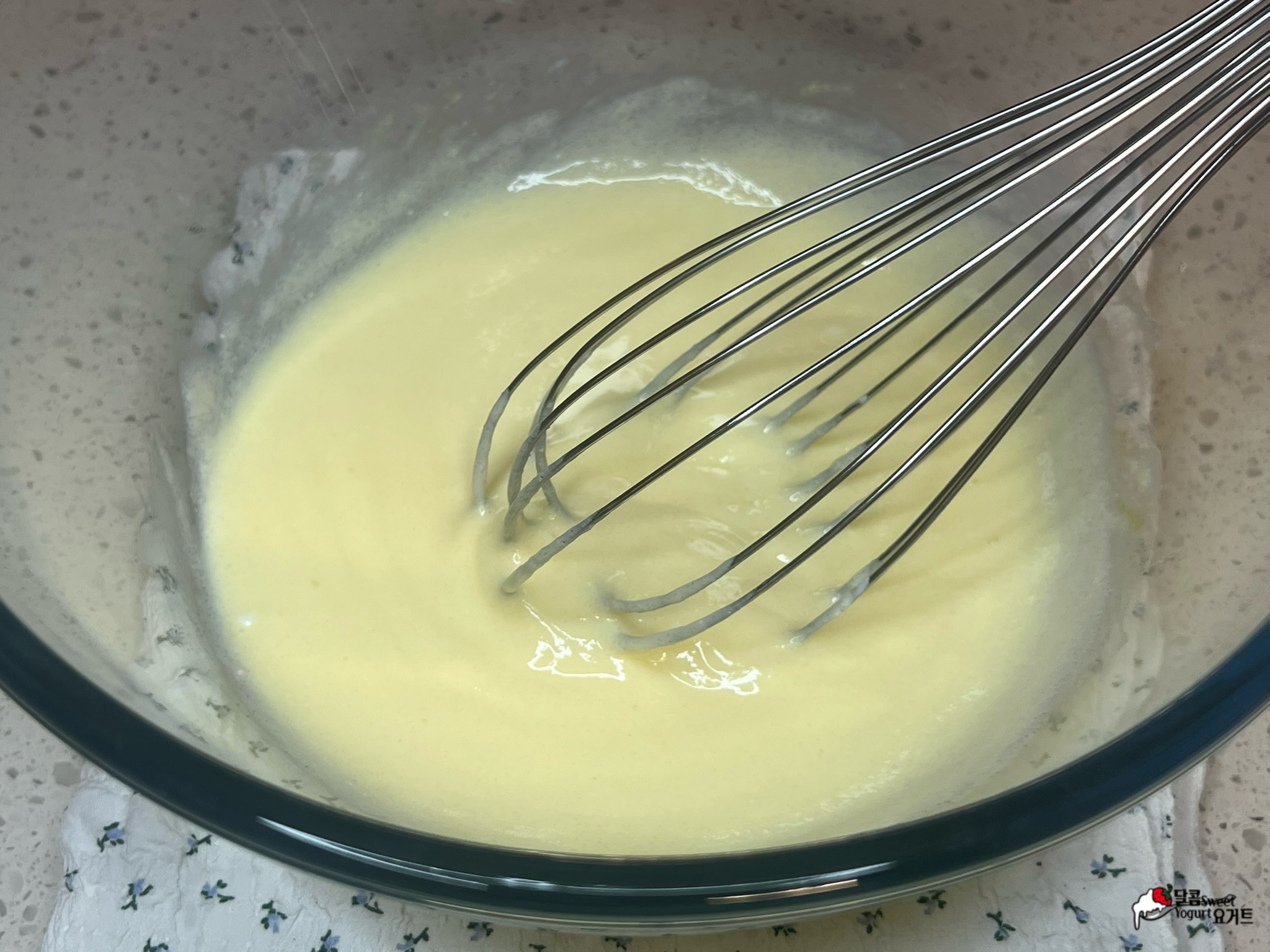 계란 1개, 그릭요거트 200g, 알룰로스 설탕 60g을 넣고.